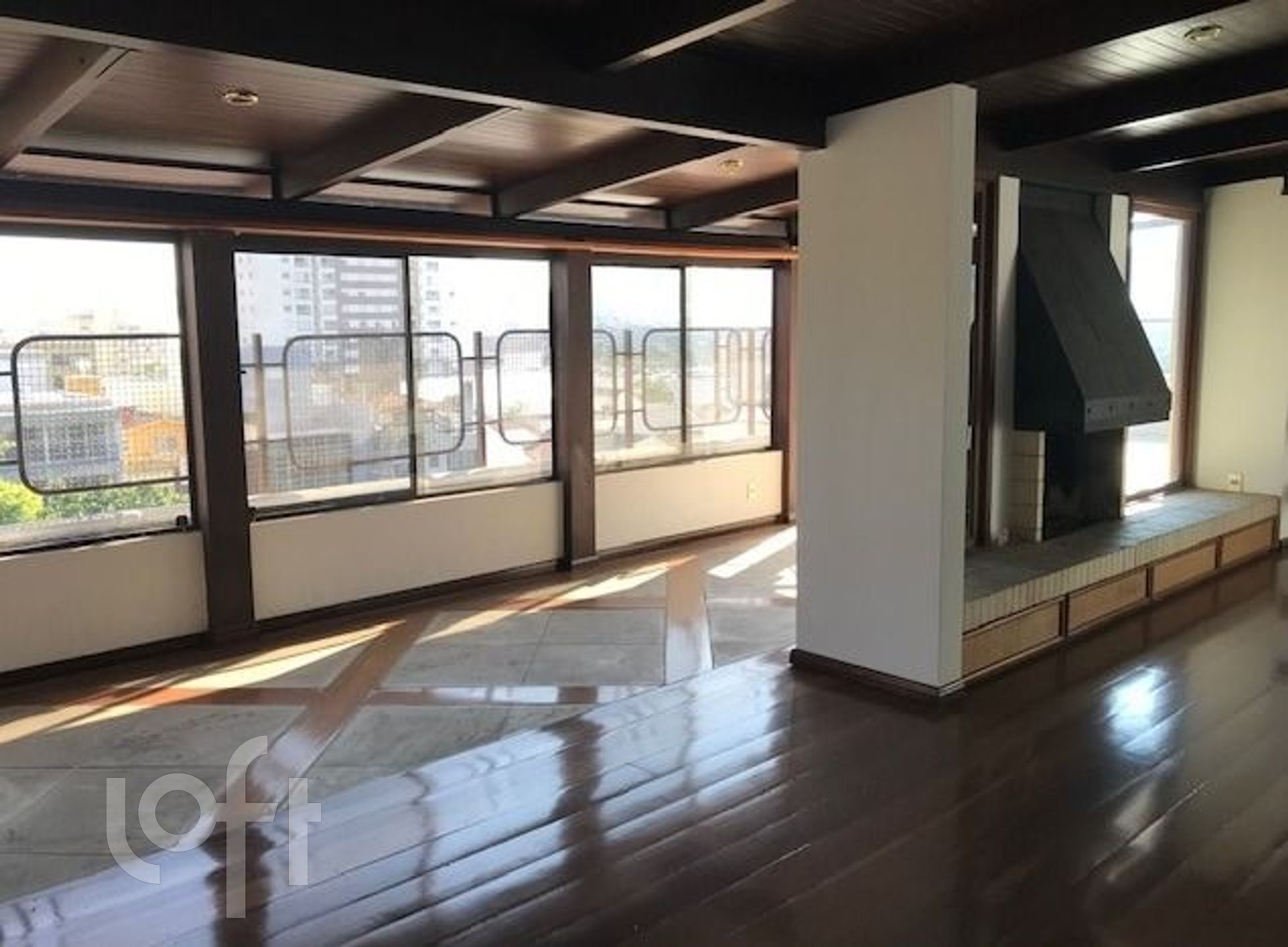 Apartamento cobertura, com vista para cidade; 2 dormitórios, mais um home office; 3 banheiros, sendo um de serviço, dependência completa para empregada. Estar íntimo com sala de jantar familiar; espaçoso estar social com lareira, bar, churrasqueira e sala de jantar; amplo terraço com depósito externo. Móveis fixos em todos cômodos. Escada escultural em madeira, pisos e forros em madeira nobre; vaga de garagem espaçosa. Portaria 24 horas, 2 salões de festas, área verde recreativa. Faça contato com a corretora indica no site.